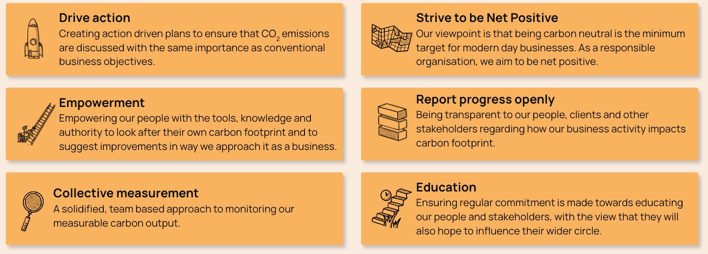 - Setting out or Carbon Mission – essential to have a north star for Net Positive that the organisation can rally around.